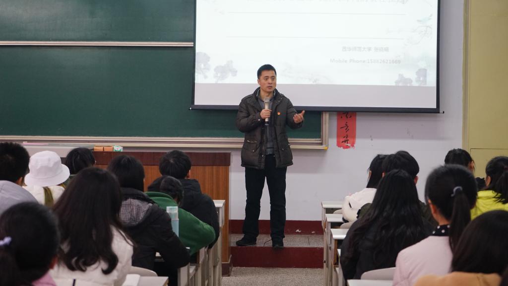 12月13日,南充校區團委在4302教室開展了《時代新人的初心使命,新人時代的責任擔當》的主題講座,特別邀請到西華師范大學教務處副處長張曉明老師擔任主講人。南充校區學生工作部(團委)部長郝江嶺、學生工作部(團委)團委書記兼學生工作部副部長隨明明、學生教育管理課副科長李長海、團委老師江雪聆聽了講座。