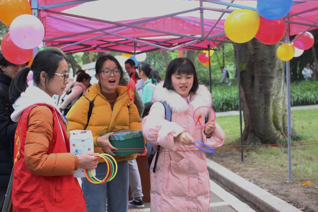 上午十點,生命綠舟協會的理事便已經開始活動的各項準備工作了。十一點半活動正式開始。不到一會,各個活動的桌前都排起了長長的隊伍。同學們都自覺地遵守活動的流程,從簽字到知識競答。但最受歡迎的活動環節是“艾”的圈圈,許多人都套中了獎品。整個活動過程歡快而輕松。