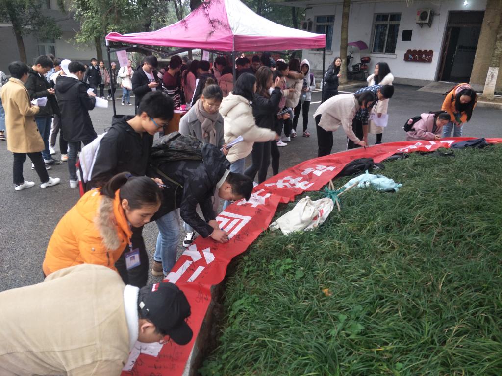 活動中,財經學院社會活動部成員邀請同學們掃碼填寫交通文明現象調查問卷,引導同學們在回答問題中對交通文明的思考。然后組織同學們在“牽手文明交通,你我共同行動”的橫幅上簽字,增強同學們對文明交通的認同感與責任感;社會活動部還為參加活動的同學們準備了抽獎環節,給參與此次活動的同學們贈送了小禮品。同學們反響熱烈,橫幅上簽滿了名字,最后社會活動部成員合影留念。