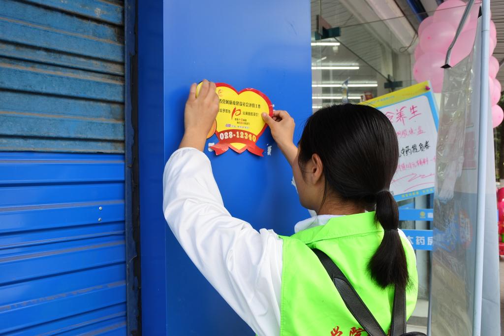志愿者張貼“黨風(fēng)廉政”宣傳標(biāo)語