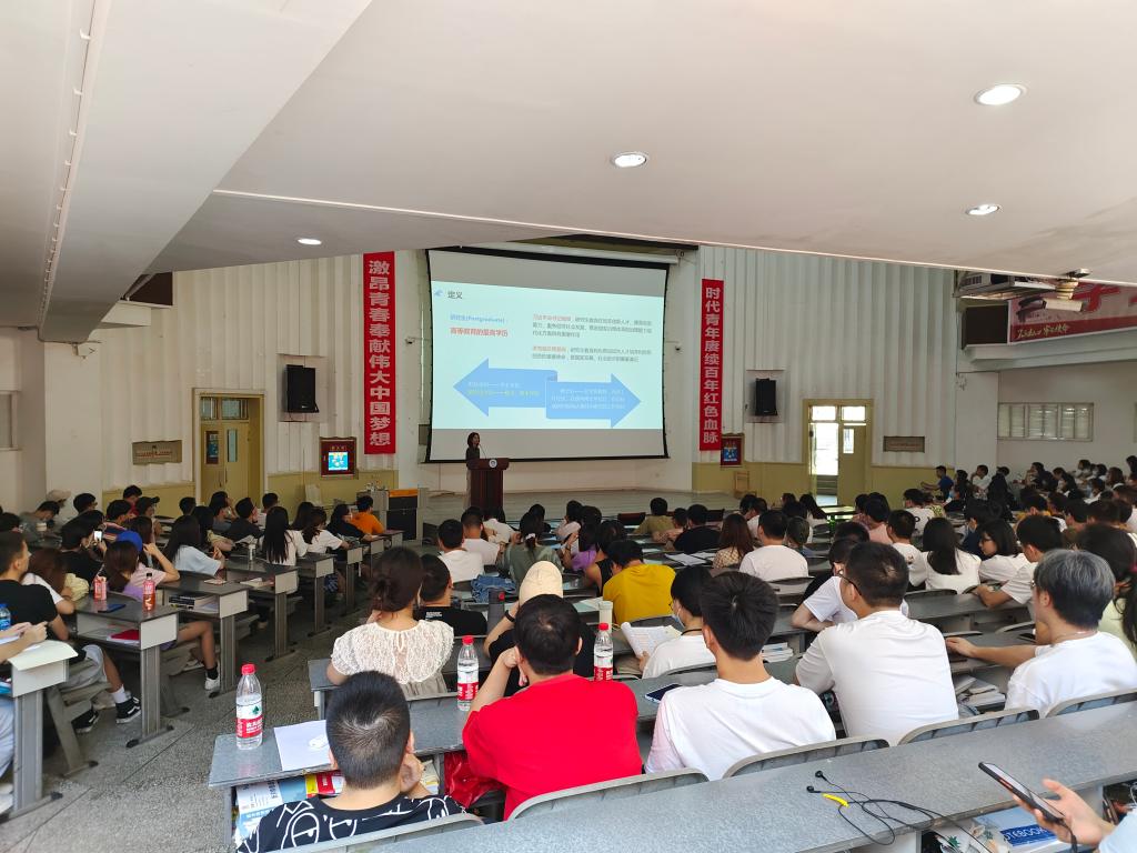 為更好服務學生考研,宣傳國家、學校相關考研政策,科學指導考研報考。9月9日下午,學生工作部(團委)在第四教學樓4317教室舉辦了2022年考研政策解讀宣講會。學校研究生院副院長楊雁教授應邀擔任主講嘉賓,向校區學子宣講了2022年學校考研政策,校區2018級、2019級近500名參加宣講會。