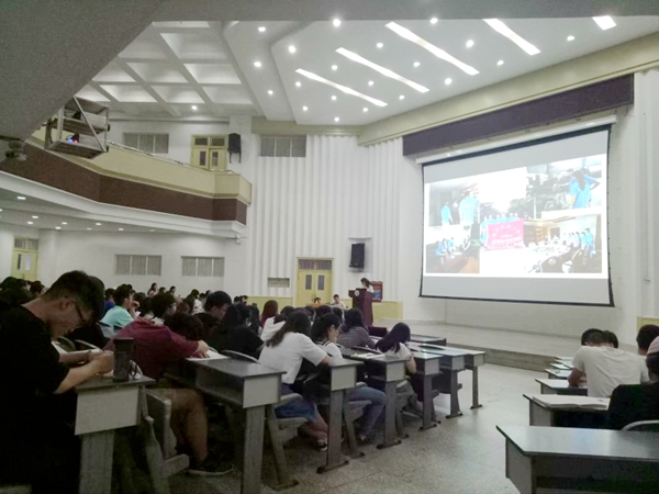 學院還邀請了2017年參加過暑期社會實踐的八支團隊,到動員大會現場進行了成果展示與經驗交流。八支團隊分享了前期準備、實踐過程中的活動安排、后期宣傳與總結等內容。