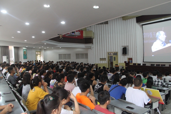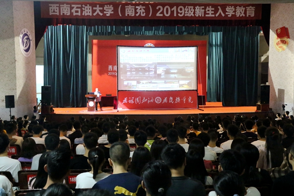 張明洪教授對同學們順利考入西南石油大學表示祝賀。他向同學們介紹了學校的誕生背景、建設發展歷程和自己的學習工作經歷。他說,建校初期,條件艱苦,我們一邊跟著老師讀書,一邊和老師一起建設校園,晚上要學習還需要在煤油燈下讀書畫圖。后來終于建造出了屬于自己的校舍。情到深處自然濃,過去的求學經歷恍若昨日。張教授還用俄語為新生們聲情并茂地朗誦了小說《鋼鐵是怎樣煉成的》節選,贏得了同學們熱烈掌聲。