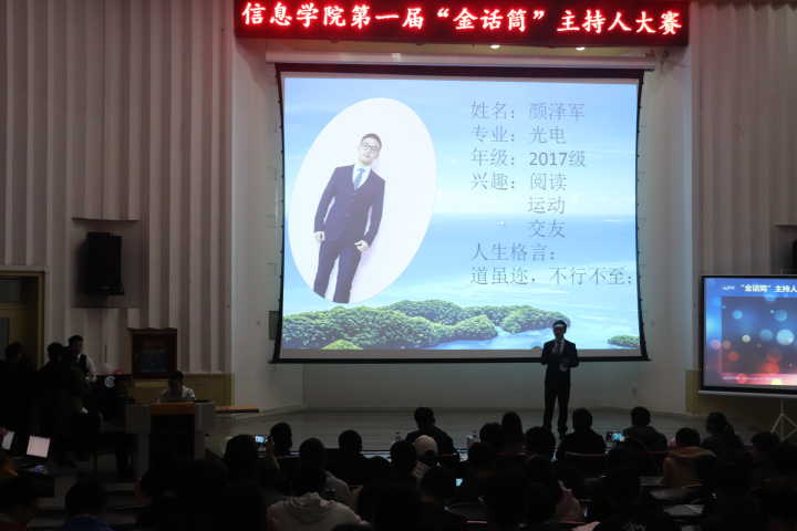 為鼓勵同學展示自我才華,提高語言表達能力,11月15日下午,信息學院在4317教室舉行了學院第一屆“金話筒”主持人比賽。本次比賽評委由信息學院輔導員唐明森、劉強以及信息學院學生會代表擔任。