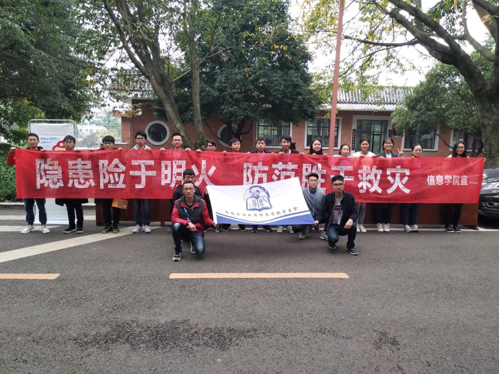 活動期間,胡丹老師向同學們宣傳講解了消防安全知識,組織同學們學習了解了消防安全自救技能。同時,信息學院還在外語村門口設置了消防安全知識宣傳點,通過播放消防安全宣傳教育片、發放消防安全教育傳單等形式,向前來參加活動的同學介紹了消防安全知識,了解了如何加強學生宿舍消防安全等方面的知識。還組織同學在內容為“隱患險于明火,防患生于救災”的橫幅上簽名合影。