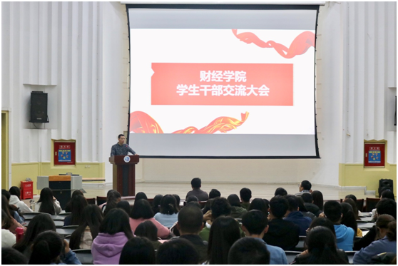 10月23日晚,財經學院在多功能學術報告廳舉行學生干部交流大會。財經學院教學干事劉全,輔導員謝曜勵、曾和麗以及財經學院全體學生會干部和各年級班委參加了此次會議,楊智光擔任大會的主持。