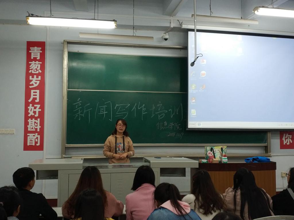 為提高大家的新聞寫作能力,提高我院新聞稿質量,10月19日晚,信息學院在第四教學樓4310教室進行了新聞寫作培訓。信息學院輔導員胡丹、劉新暉、唐明森以及劉強老師為大家進行培訓,信息學院全體宣傳干部參加培訓。