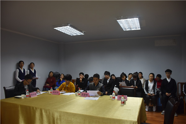 輔導員周欣欣向大家介紹了答辯流程與形式。參與答辯的22名同學依次結合自身實際,分別從學習、工作、生活、思想等方面闡述了自身優勢,向評委和參選同學展現了個人在2017—2018學年取得的成績,評委現場進行打分。