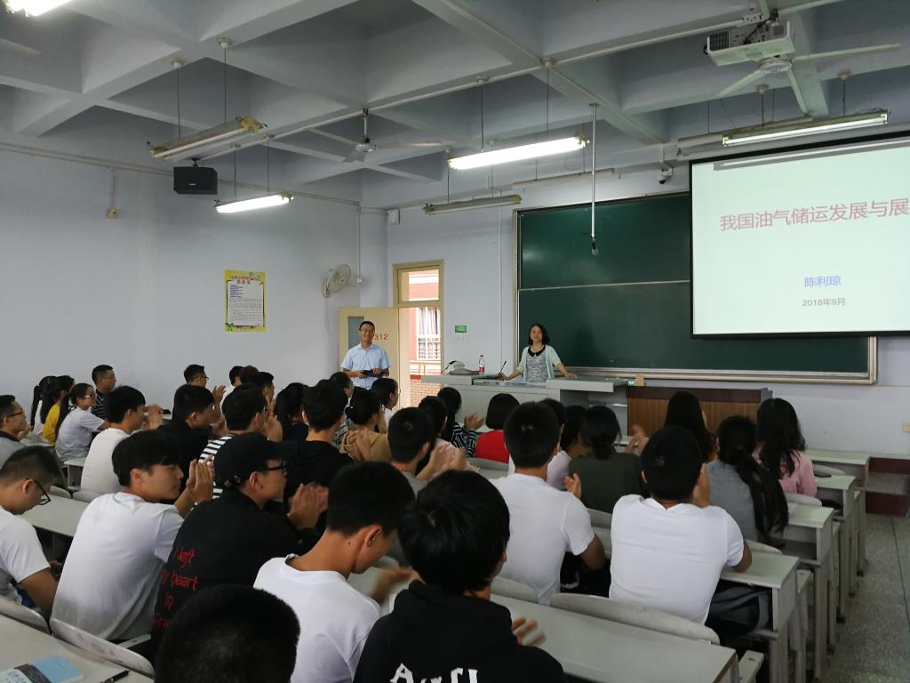 9月7日上午10點,石油與天然氣工程學院碩士生導師陳利瓊教授在第四教學樓4312作了題為《我國油氣儲運發展與展望》學術講座。能源與環境系統工程專業2017級全體同學參加,講座由工程學院副院長周培山老師主持。