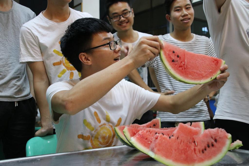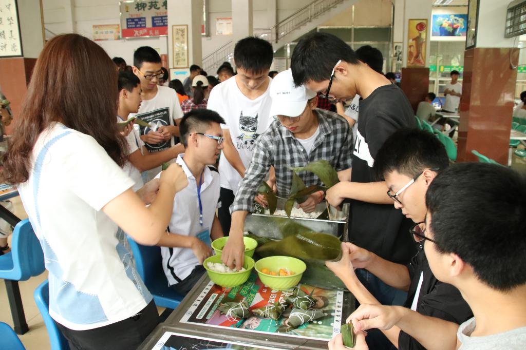 活動主要有包粽子和吃西瓜兩個(gè)環(huán)節(jié)。雖然大家都提在視頻上學(xué)習(xí)了包粽子的方法,但是包粽子時(shí)許多同學(xué)還是手忙腳亂,笑料百出,大家互相幫助,互相合作,忙得不亦樂乎。粽子包好下鍋去煮的間隙,班委組織大家開展了吃西瓜比賽,大家不顧形象,大快朵頤,現(xiàn)場不時(shí)傳來此起彼伏的加油聲和笑聲。最后,芳香撲鼻的粽子出鍋,大家紛紛品嘗著自己的勞動成果,一股自豪之情油然而生,活動在一片歡樂的笑聲中結(jié)束。大家滿載而歸,將自己的粽子帶回與其他專業(yè)的同學(xué)一起分享。