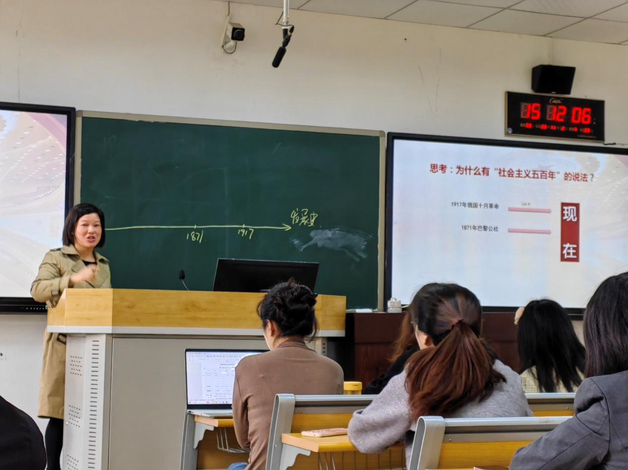 會(huì)上,馬克思主義教研室馮彩虹、陳彬兩位老師分別進(jìn)行了思政公開(kāi)課展示。馮彩虹以“社會(huì)主義發(fā)展史為什么有五百年的說(shuō)法”為主題,通過(guò)早期空想社會(huì)主義、空想平均社會(huì)主義和批判的空想社會(huì)主義三個(gè)社會(huì)主義思想發(fā)展階段,深度解讀了空想社會(huì)主義產(chǎn)生的根源和發(fā)展歷程。陳彬以《毛澤東思想和中國(guó)特色社會(huì)主義理論體系概論》課的導(dǎo)論部分為例,以深厚的理論功底,淵博的歷史知識(shí),深入淺出的分析了馬克思主義中國(guó)化時(shí)代化的提出以及推進(jìn)馬克思主義中國(guó)化時(shí)代化的重大意義。