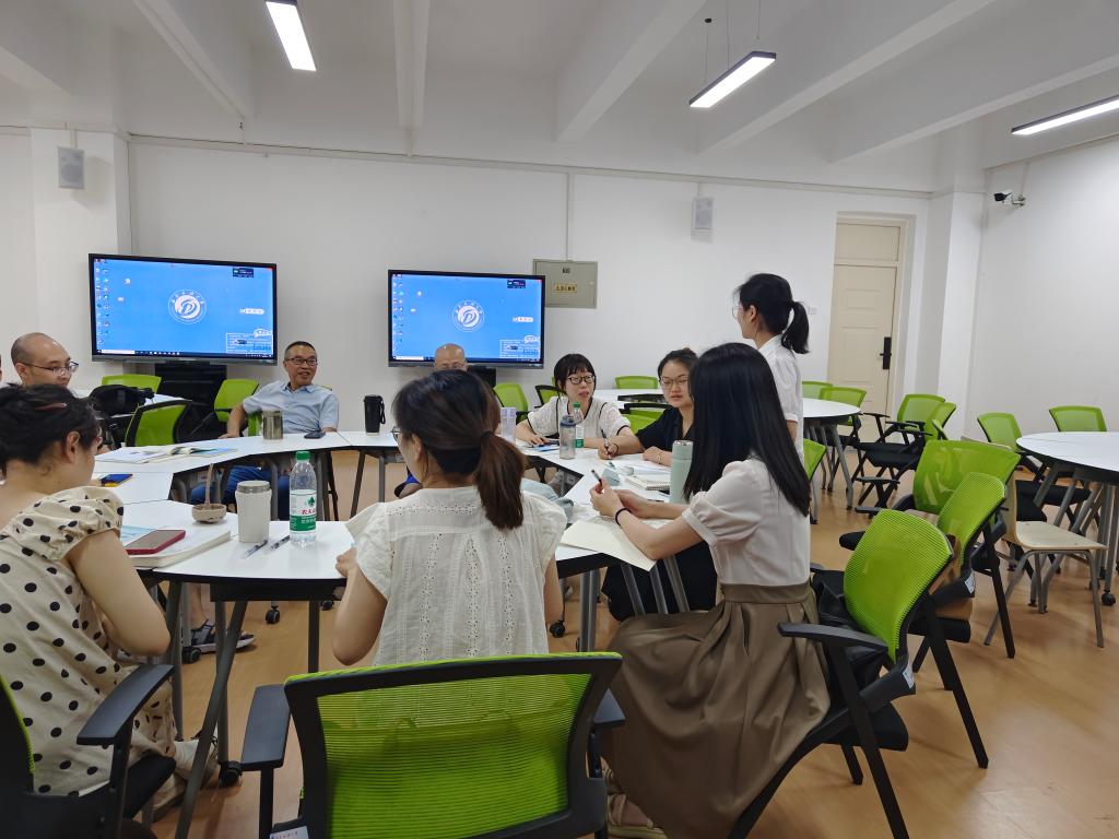 參加實(shí)踐研修教師在教研室分享研修心得體會(huì)