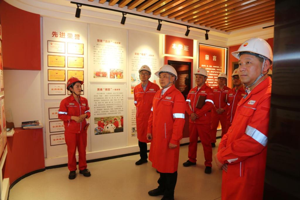 此次活動作為支部品牌建設系列活動的重要一環,聚焦校友資源的深入挖掘與石油精神的薪火相傳。全體黨員首先深入川中油氣礦磨溪雷一1總站,參觀了總站工藝流程區、增壓機房、企業文化長廊和企業黨建文化廣場,詳細了解了龍王廟組氣藏勘探開發歷程和川中油氣礦攻堅文化精神內涵,看望了長期扎根生產一線的校友們,聽取了井站的工藝流程、信息化管理以及開發生產等情況匯報,對總站生產概況及特色班組文化、五型班組建設、中心站無人值守井生產管理制度及管理模式進行了解。支部黨員同志在站內工作人員的帶領下,參觀了“本學班”班組文化展廳、黨支部工作室和“本學練兵場”,了解了站長陳本學的光輝事跡和工作站取得的多項榮譽。