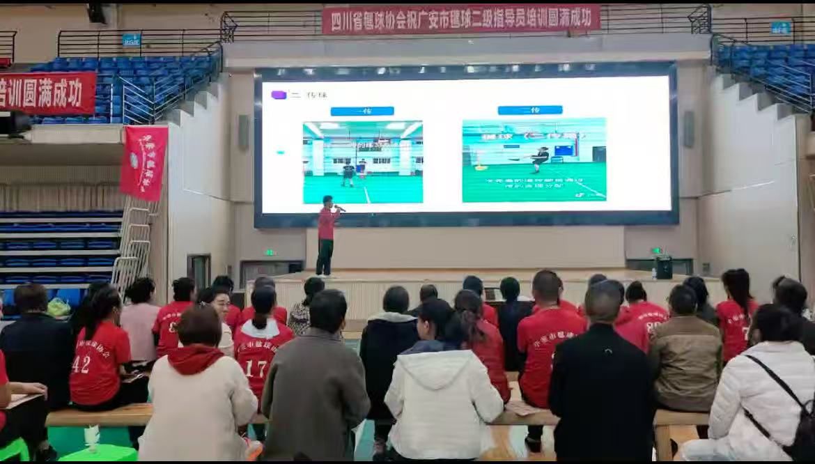 為履行高校社會服務職能,11月1日、2日,廣安市二級社會體育指導員(毽球)培訓班在華鎣市體育館舉辦,本次培訓由廣安市教育和體育局主辦,華鎣市教育科技和體育局承辦,華鎣市毽球協會協辦。教務部文化素質與公共基礎課教學中心體育老師許偉為參訓指導員培訓。