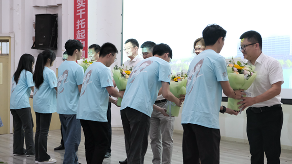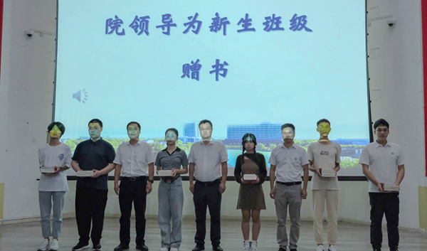 李忠偉、姚偉寧、蔡燦等領導為新生班級代表贈書,學生代表為學院老師們獻花并祝教師節快樂。(機電工程學院/黃冉 陳星宇 彭星宇 朱晨磊)