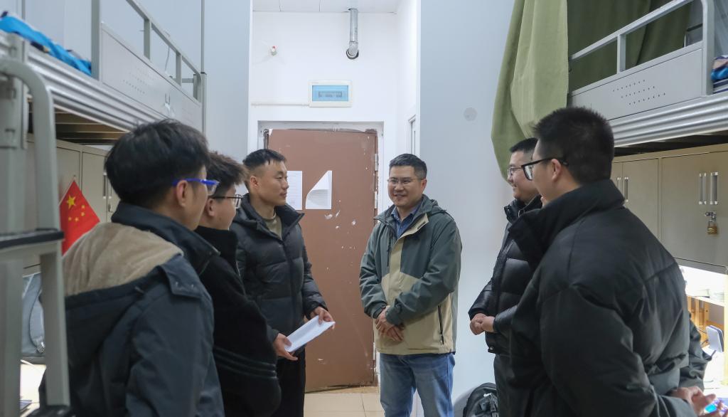 蔡燦走訪學(xué)生宿舍與學(xué)生交流場景