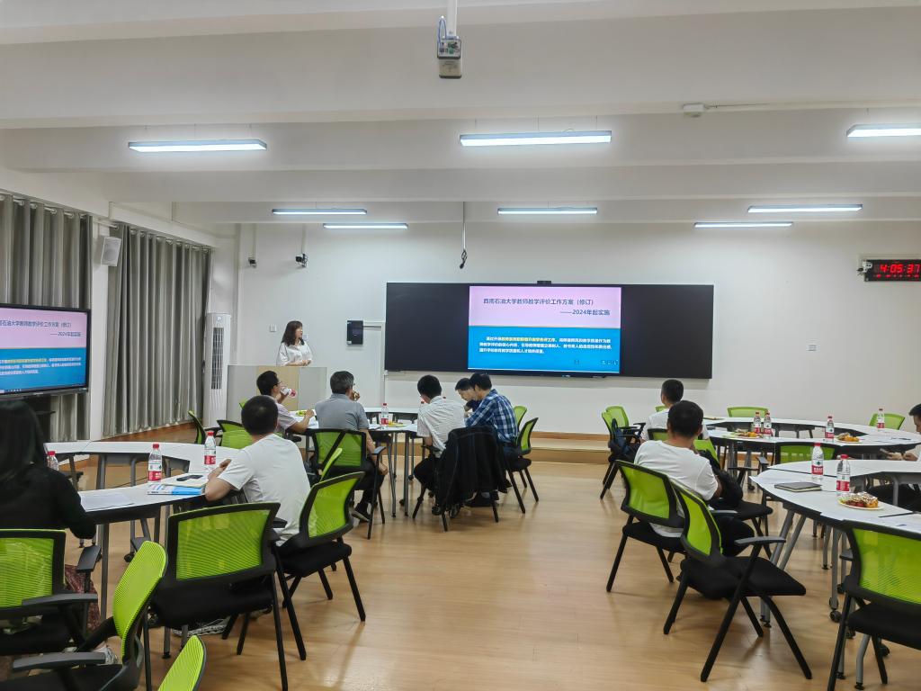交流會上,沈坤蓉老師向學院老師介紹了學校新頒布的教師教學評價方案及實施方法,詳細講解了評價方案的具體評分辦法,回答了老師的疑問,并針對老師如何做好職稱晉升相關準備工作提出了建議。