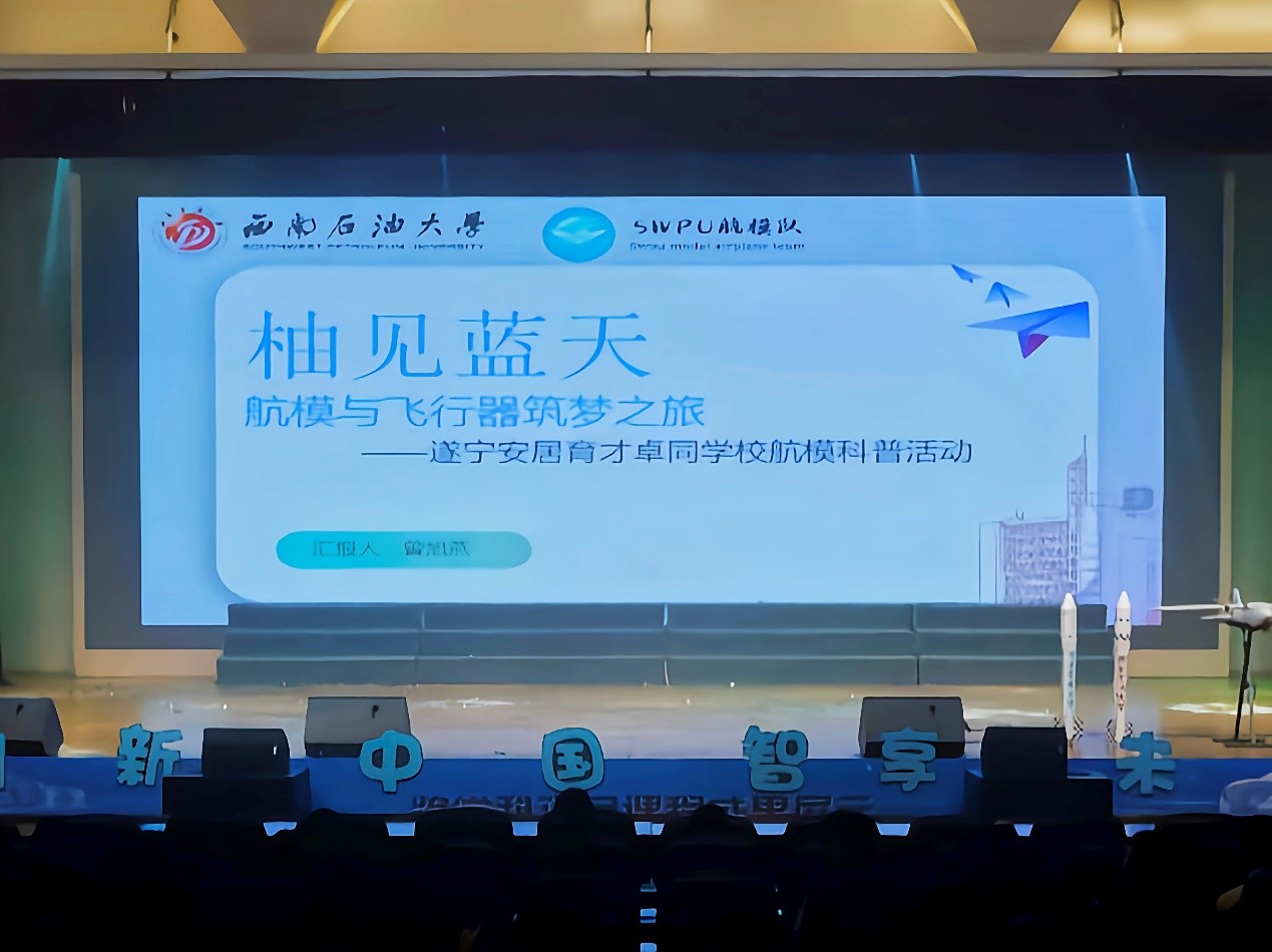 5月17日,西南石油大學機電工程學院航模隊受邀參加遂寧安居育才卓同學校首屆科技節。我校機電工程學院教師田軍帶領航模隊為在場師生帶來了一場航模飛行表演及航模科普講座。
