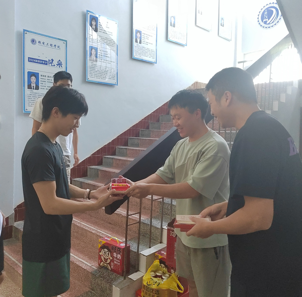 為進一步增強留校學(xué)生備考和備賽的信心,緩解同學(xué)們的壓力,8月16日上午,機電工程學(xué)院輔導(dǎo)員蘇國巋、王曉龍代表學(xué)院對學(xué)院留校學(xué)子進行慰問,并為同學(xué)們送上清涼飲品。