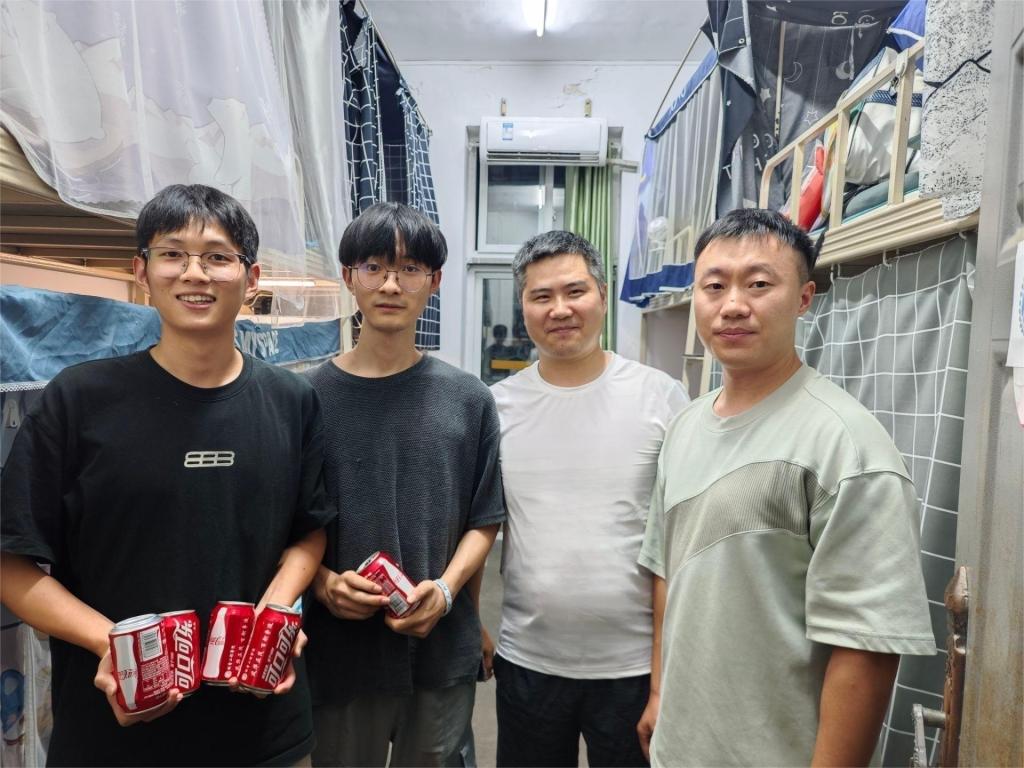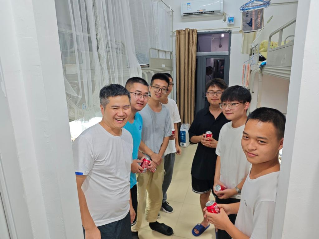 蔡燦一行到學生公寓1棟、2棟、6棟、學生電梯公寓寢室依次給同學們送上帶有勵志標語的飲品,詳細了解同學們的假期生活和學習情況,鼓勵考研的同學們堅定信心,不怕困難,打贏考研這場攻堅戰,叮囑同學們做好防暑措施,注意用電安全。蔡燦表示,機電院始終將同學們的實際困難放在首位,希望通過這次活動讓返校的學子們再次感受家的溫暖,并祝愿同學們在新的學期學業有成,前程似錦。同學們都紛紛表示作為機電院的學生真切感受到了關懷與溫暖。