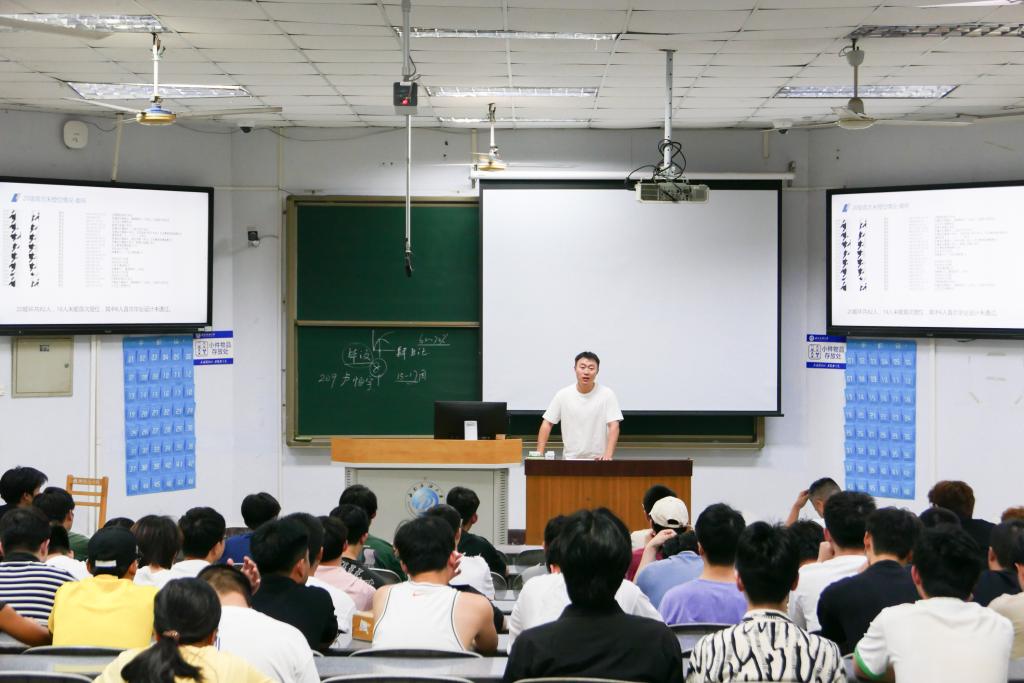 座談會上,蔡燦向參會學生提出,要正視自己面臨的問題,通過制定目標和計劃,調整學習態度,學會積極主動尋求學院老師和同學的幫助,早日完成培養方案的要求。王曉龍為同學們分析了個人學習發展路徑,并結合自己的學習經歷和前輩們的經驗,為同學們提供了實用的學習策略。互動環節,同學們敞開心扉,輪流發言,各自分享了學習與生活故事。參會老師認真聽取了每位同學的發言,針對大家提出的課程學習困難、學習動力不足、學習方法不科學等問題與參會學生展開細致深入地交流。
