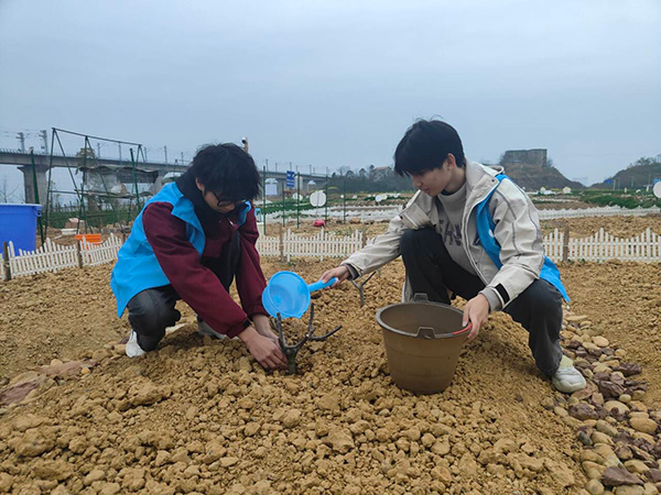 為培養(yǎng)大學(xué)生勞動精神,引導(dǎo)青年學(xué)子樹立正確的勞動價值觀,3月12日下午,新能源與材料學(xué)院青年志愿者協(xié)會在荊苑社區(qū)都市田園大學(xué)生勞動實踐基地開展了植樹節(jié)栽種活動。