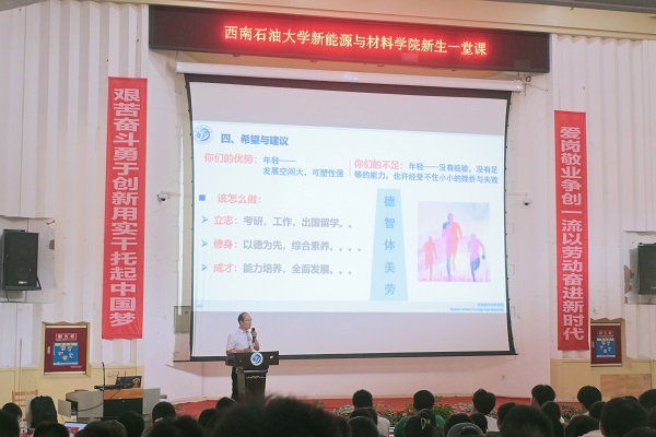 新生第一課上,武元鵬詳細介紹了學院的歷史和現狀,通過生動的案例和最新的行業動態重點講解了新能源與材料領域的前沿技術和研究方向。他展示了學院近年來在新能源技術、材料科學等方面取得的研究成果和應用實例。鼓勵新生們在未來的學習和生活中,充分利用學院提供的各種資源,保持好奇心和學習熱情,并以積極的態度面對挑戰和機遇,在大學生活中取得優異的成績,為未來的職業發展奠定堅實的基礎。
