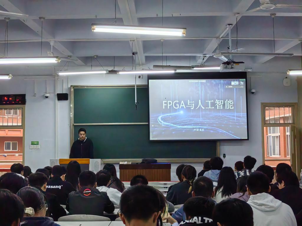 何永龍圍繞“芯時代與FPGA”“英特爾FPGA中國創新中心”“FPGA人才發展現狀”“如何學習FPGA技術”四個方面進行了授課,詳細介紹了FPGA行業知識,解讀了解讀行業前景,帶領同學們深入了解英特爾FPGA創新中心的職能和人才培養體系。