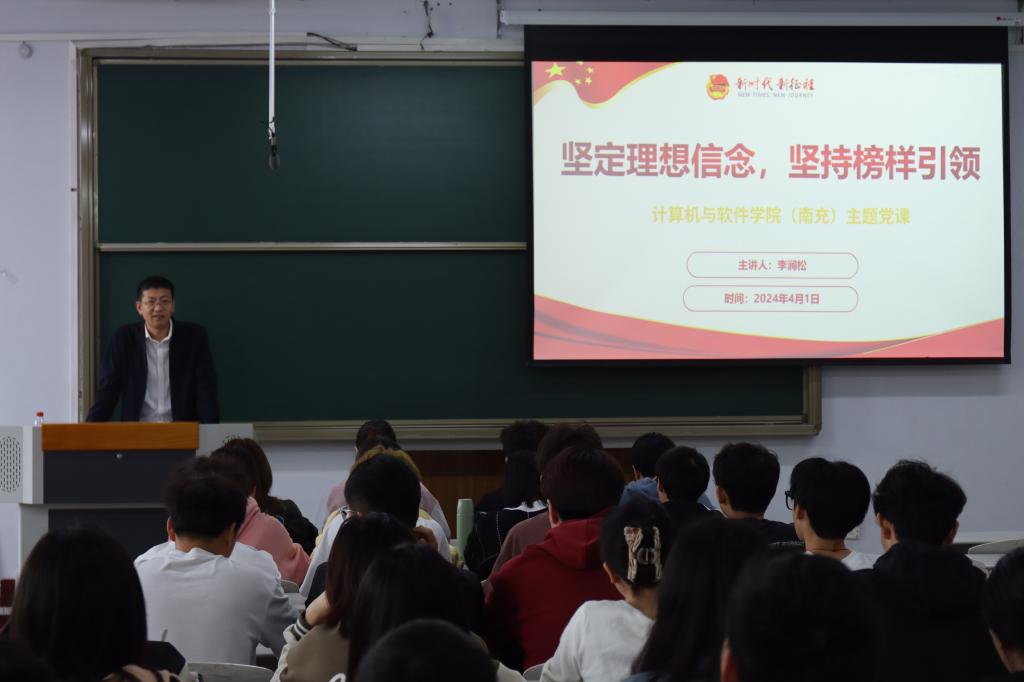 為端正入黨積極分子入黨動機,堅定理想信念,進一步加強黨性修養,4月1日,計算機與軟件學院黨委書記李澗松在第四教學樓4306教室為學院2024年春季入黨積極分子培訓班學員講授題為《堅定理想信念·堅持榜樣引領》主題黨課。學院學生辦公室(團總支)主任胡丹、黨委組織員李建軍現場聆聽黨課。