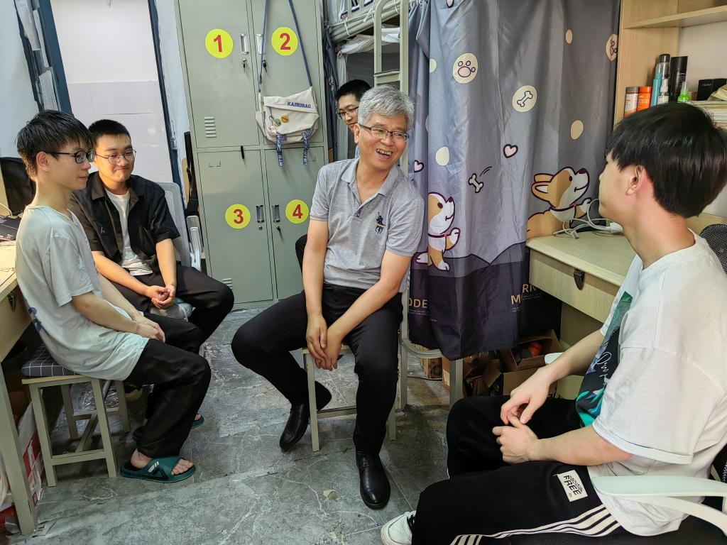 院領(lǐng)導(dǎo)及輔導(dǎo)員走訪了部分學(xué)生寢室,以關(guān)懷學(xué)生生活和了解“一站式”社區(qū)建設(shè)為主題開展了“寢室談心談話”。談心談話過程中,李澗松就學(xué)生關(guān)心的國內(nèi)外熱點(diǎn)話題及學(xué)院建設(shè)等內(nèi)容與同學(xué)們展開了熱烈討論,對大家提出的共性問題給予細(xì)致解答。趙剛就同學(xué)們提出生活中遇到的困難,表示學(xué)院將積極協(xié)調(diào)相關(guān)部門推進(jìn)學(xué)院“一站式”學(xué)生社區(qū)建設(shè),改進(jìn)和解決同學(xué)們的生活難題。胥林、劉忠慧圍繞課程安排、學(xué)業(yè)規(guī)劃、就業(yè)前景等話題,指出學(xué)院將進(jìn)一步優(yōu)化教學(xué)資源配置,提升教學(xué)質(zhì)量和學(xué)生服務(wù)水平,確保每一位同學(xué)都能夠在學(xué)院得到充分的成長和發(fā)展。