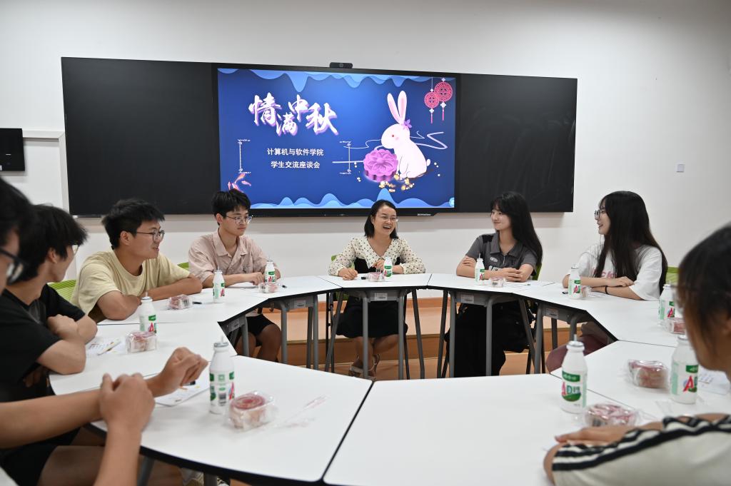 師生們圍坐一堂,共話中秋習俗,分享思鄉之情,胡丹耐心傾聽每位學生的心聲,提供貼心建議,了解學生們在校生活的點滴與規劃,鼓勵大家要珍惜時光,勇于挑戰,用知識構筑夢想基石。晚上,胡丹與唐明森帶著學院的關懷深入新生寢室,逐一探訪,詢問了生活細節,更給予了精神上的鼓勵與支持。同時,學院還準備了中秋月餅與牛奶飲品,每份禮物都承載著對學子的深情厚誼。