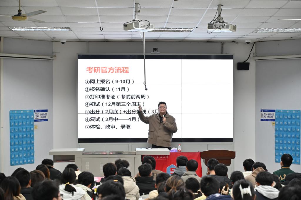 為幫助同學們有效進行考研備考,合理選擇目標院校,11月28日,計算機與軟件學院在第四教學樓4316教室開展考研備考規劃講座。本次講座特邀新東方考研備考規劃師王一珉擔任主講,學院學生工作辦公室(團總支)主任胡丹主持,200余名學生到場聆聽。