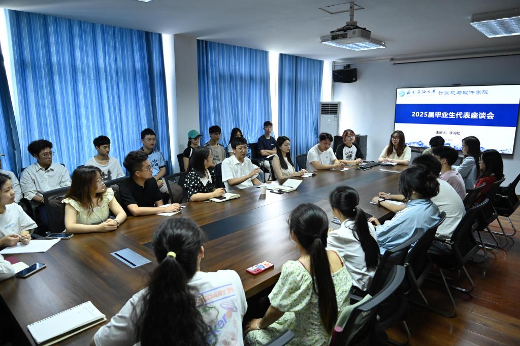 座談會在輕松愉快的氛圍中拉開帷幕,各畢業生代表踴躍發言,分享了自己在大學期間的學習生活、科研競賽、社會實踐等方面的成長與收獲,表達了對母校和師長們的感激之情,并結合大學四年的學習生活經歷,就學院人才培養、教學管理、就業指導等方面提出相關建議。學院領導及畢業班輔導員認真傾聽發言,對畢業生們提出的問題耐心解答,并表示學院下一步會加強各方面的管理建設。