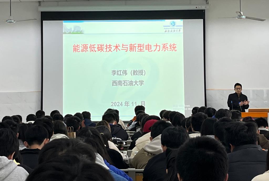11月21日下午,電氣信息學(xué)院李紅偉教授在南充校區(qū)第三教學(xué)樓3301教室作了題為《能源低碳技術(shù)發(fā)展與新型電力系統(tǒng)》學(xué)術(shù)講座。本次講座由電氣信息學(xué)院副院長諶海云主持,我院200多名學(xué)生聆聽了本次講座。