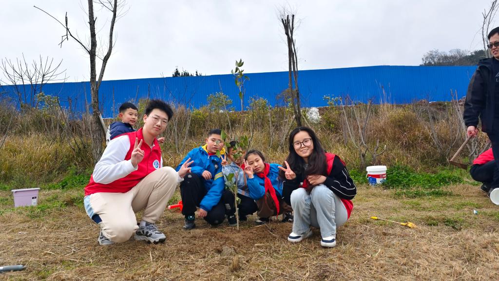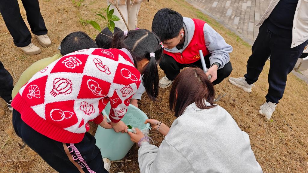 志愿者和城北小學的小朋友們于雙女石公園門口集合,由工作人員采取“四對一”結隊模式,將志愿者和小朋友們組合成10個植樹小組,配發專業工具并詳細講解操作規范和安全須知。植樹實踐中,志愿者協助小朋友們完成挖坑、培土等步驟,隨后齊心協力將一株株桂花樹苗種植在公園里。活動結束后,志愿者們組織清理了植樹過程中產生的垃圾并與自己親手栽種的樹木合影留念。
