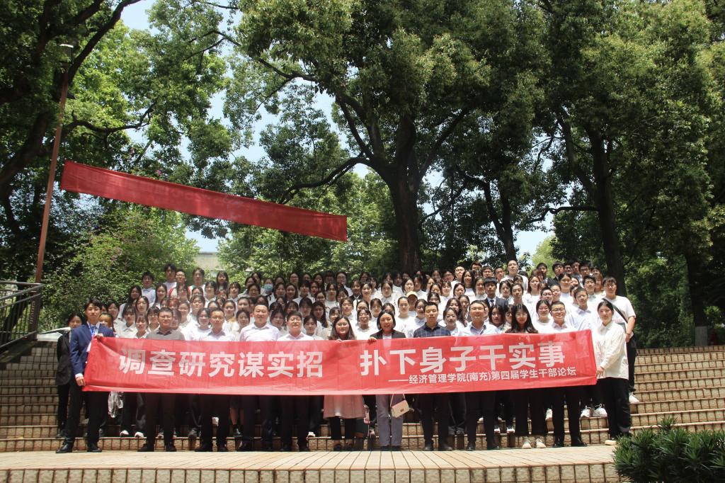 為加強學院學生干部之間的交流與學習,提高學生干部的工作能力與綜合素質,5月12日下午,經濟管理學院在第四教學樓多功能學術報告舉辦“調查研究謀實招,撲下身子干實事”第四屆學生干部論壇。經濟管理學院學生工作辦公室(團總支)主任楊智光、全體輔導員、2022級各專業班主任和全體學生干部參加此次活動。