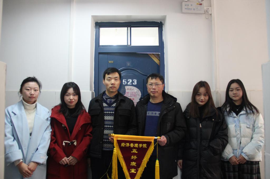 12月27日,經濟管理學院舉行“五好寢室”掛牌儀式。經濟管理學院副院長彭雙,學生工作辦公室(團總支)主任楊智光,學院綜合辦公室、各教研室有關同志參加掛牌儀式。