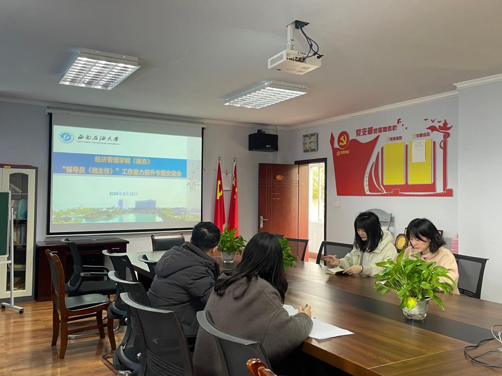 為促進學院輔導員隊伍的職業化、專業化發展,切實做好學校安全穩定工作,3月13日下午,經濟管理學院在完井樓401開展了輔導員(班主任)工作能力提升專題交流會。經濟管理學院學生工作辦公室(團總支)主任楊智光、全體輔導員及2023級班主任參加。