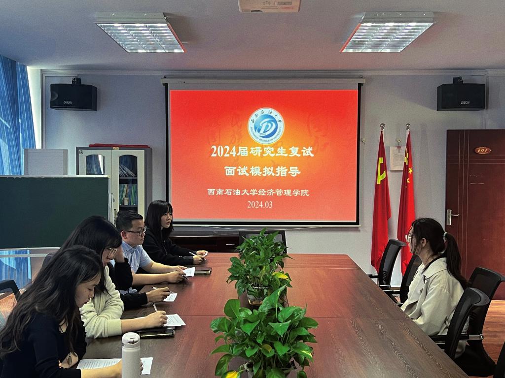 為幫助考研學(xué)子熟悉面試流程,提高復(fù)試能力,3月22日下午,經(jīng)濟管理學(xué)院在完井樓401舉行了2024年研究生復(fù)試模擬面試活動。經(jīng)濟管理學(xué)院院長助理李治兵、教師及輔導(dǎo)員代表參加本次活動并擔(dān)任評委,為學(xué)生提供復(fù)試指導(dǎo)和幫助。2024屆考研學(xué)子參加了此次活動。