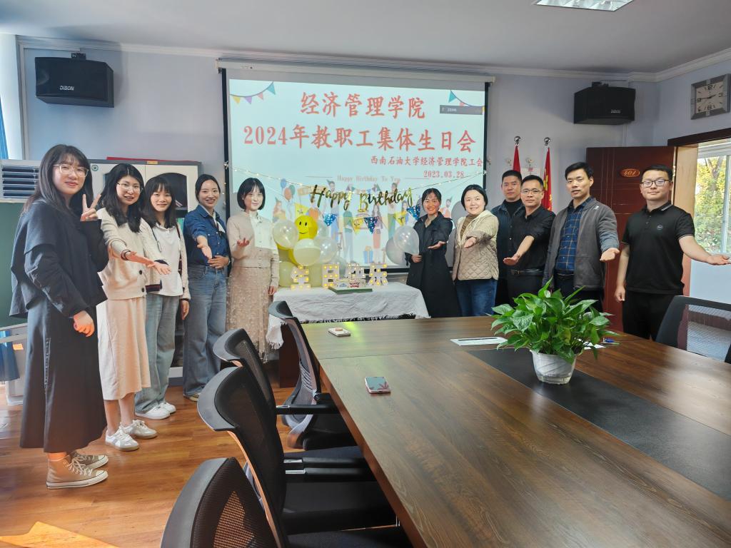 3月28日,經濟管理學院在博學樓B403舉行了一場別開生面的“教職工集體生日會”,學院黨委書記及教師代表參加了本次活動,成都、南充兩校區在線同步舉行。