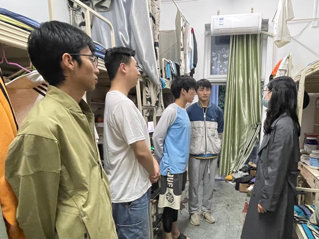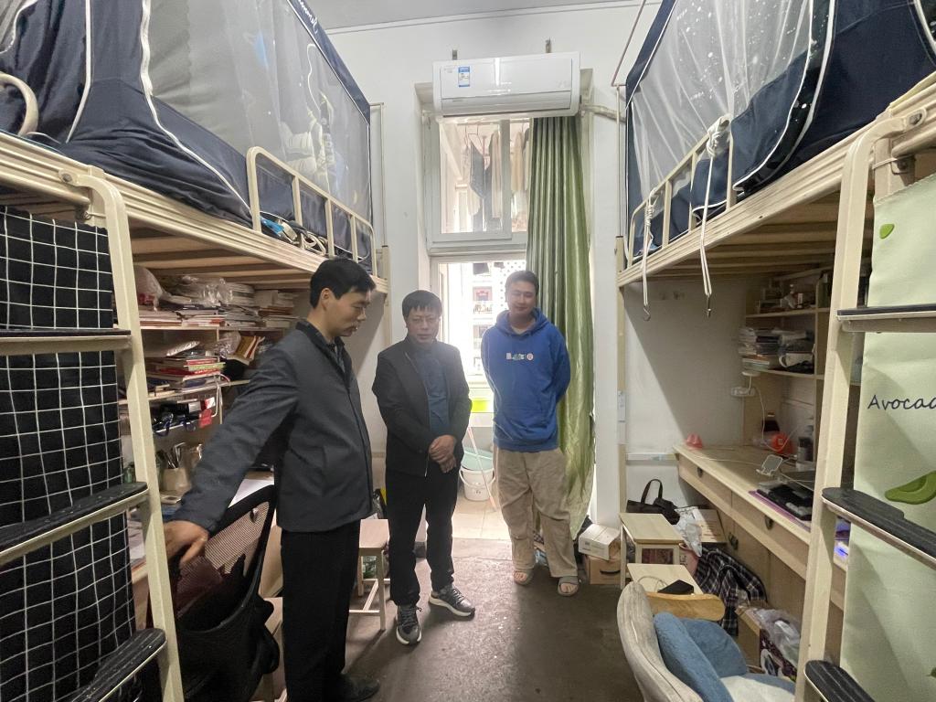 彭雙帶隊深入學院寢室進行走訪。在走訪過程中,他強調,寢室作為學生學習和生活的重要場所,不僅關系到學生個人的身心健康,也代表著學院的整體形象,要求內務需要改進的寢室立即做出相關整改,進一步推動寢室文化的建設和管理。