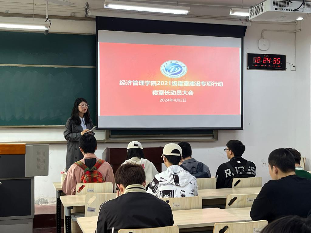為貫徹落實校區寢室建設專項行動要求,進一步提升學生寢室文化品質,營造和諧溫馨的寢室環境,4月1日—8日,經濟管理學院開展了寢室文化建設系列專項行動。經濟管理學院副院長彭雙,學生工作辦公室(團總支)主任楊智光,全體輔導員及綜合辦公室教師參加此次活動。