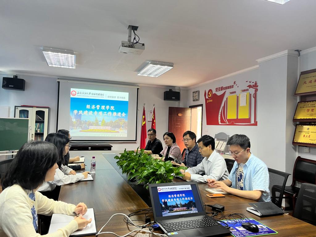 為進(jìn)一步落實(shí)立德樹(shù)人根本任務(wù),加強(qiáng)我院學(xué)風(fēng)建設(shè),營(yíng)造良好的學(xué)習(xí)氛圍,4月25日下午,經(jīng)濟(jì)管理學(xué)院在完井樓401室召開(kāi)學(xué)風(fēng)建設(shè)專項(xiàng)推進(jìn)會(huì)。經(jīng)濟(jì)管理學(xué)院副院長(zhǎng)彭雙,各專業(yè)教研室主任,全體輔導(dǎo)員和各專業(yè)年級(jí)班委干部分階段參加會(huì)議。