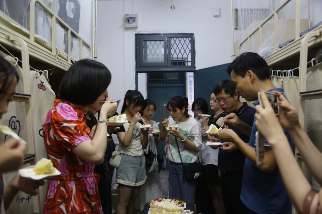 隨后,彭雙一行來(lái)到新生宿舍,檢查宿舍衛(wèi)生狀況、安全設(shè)施及生活設(shè)施,提醒新生們要注意人身安全和財(cái)產(chǎn)安全,嚴(yán)格遵守寢室管理規(guī)定,謹(jǐn)防電信詐騙。當(dāng)生日遇上“迎新日”,學(xué)院還為“小壽星”送上蛋糕并合影留念,現(xiàn)場(chǎng)同學(xué)齊唱生日歌,為他們送上生日祝福。