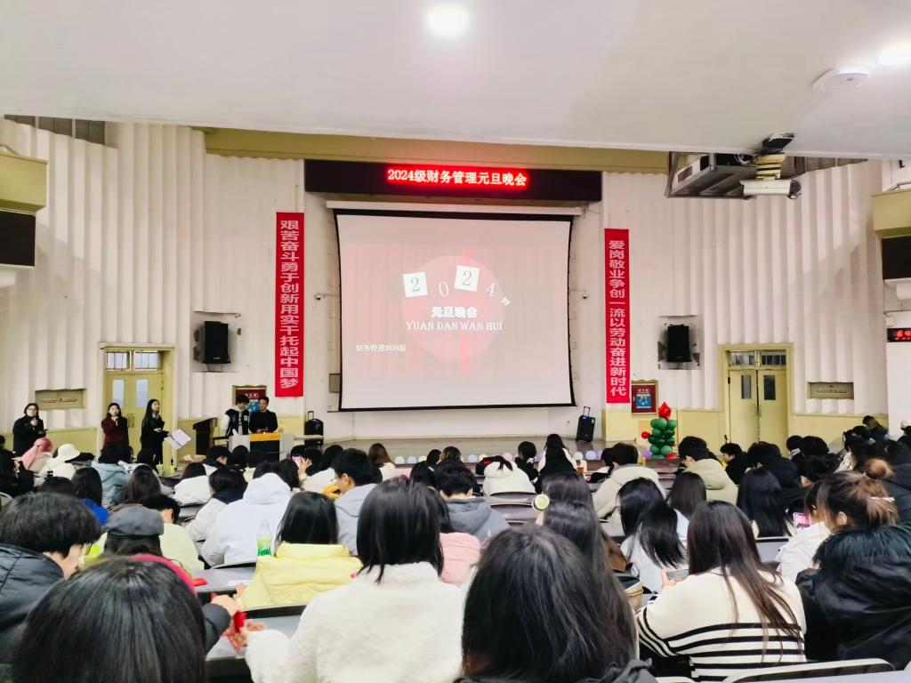 為慶祝新年的到來,增強師生間的交流與凝聚力,12月29日,經濟管理學院在第四教學樓4317教室舉辦了“財韻新元-管夢華章”元旦晚會。輔導員胡朝偉及2024級全體同學參加。