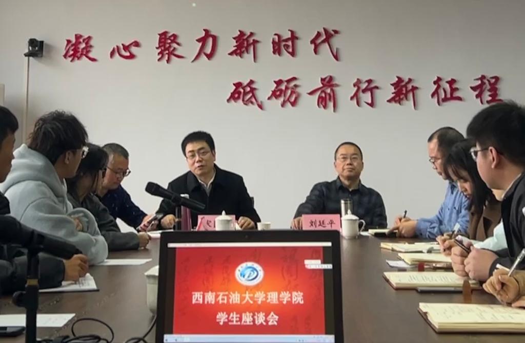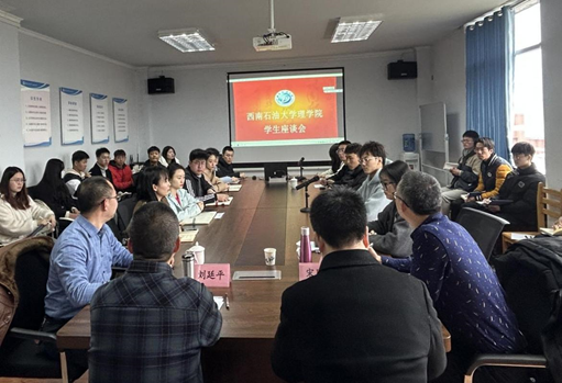 2月23日下午,理學(xué)院在完井樓501會議室舉行學(xué)生座談會。理學(xué)院黨委書記劉廷平、院長宋國杰,黨委副書記、紀(jì)委書記王茂江、副院長稅正偉,學(xué)院在南充校區(qū)的各年級輔導(dǎo)員、主要學(xué)生干部參加會議。會議由稅正偉主持。