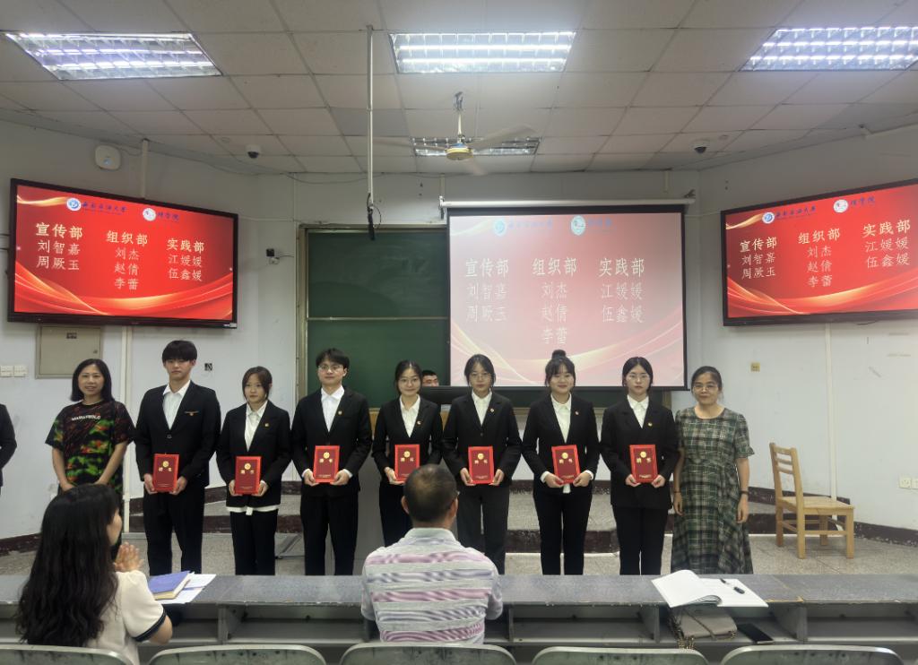 會上,稅正偉肯定了同學們在過去一年中的辛勤付出和取得的優異成績,并勉勵同學們要主動思考、積極進取、銳意創新,做好師生之間的橋梁,為學院的發展貢獻自己的力量。隨后,薛靜宣讀《關于聘任理學院團學組織學生干部的通知》,與會領導和教師為理學院團學組織辦公室、宣傳部、組織部等十個學生組織負責人頒發聘書。優秀團學組織集體實踐部部長及三名優秀團學組織個人結合自己所在部門的工作經歷與心得體會,向大家詳細介紹了工作內容、工作成果以及經驗總結,這些寶貴的經驗分享為在座同學們的工作提供了有益的借鑒與啟示。