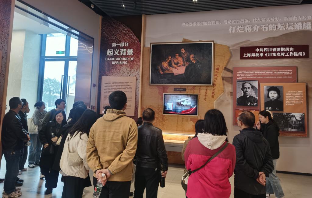 在講解員的帶領下,全體黨員來到紅巖·華鎣烽火警示教育基地展廳進行深入學習領會紅巖精神。展廳內容以1948年中共川東臨委組織領導的華鎣山起義為主,由起義背景、起義籌備、起義爆發、堅持斗爭、獄中斗爭和紅巖精神、紅巖家書、獄中八條七個部分組成。一張張真實的歷史圖片、一件件珍貴的文物展品,生動展現了當年革命先輩們在華鎣山艱苦卓絕的斗爭歷程。全體黨員懷著敬仰之情與緬懷之心,走進那段波瀾壯闊的烽火歲月,全面了解革命先烈們英勇斗爭、不畏犧牲的光輝歷程,深切緬懷革命先烈們篳路藍縷、前仆后繼的英雄壯舉,深刻感悟革命先烈艱苦奮斗、勇于奉獻的斗爭精神。