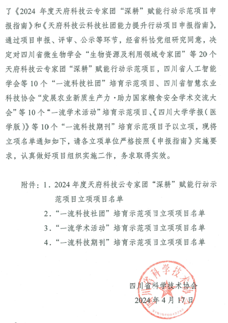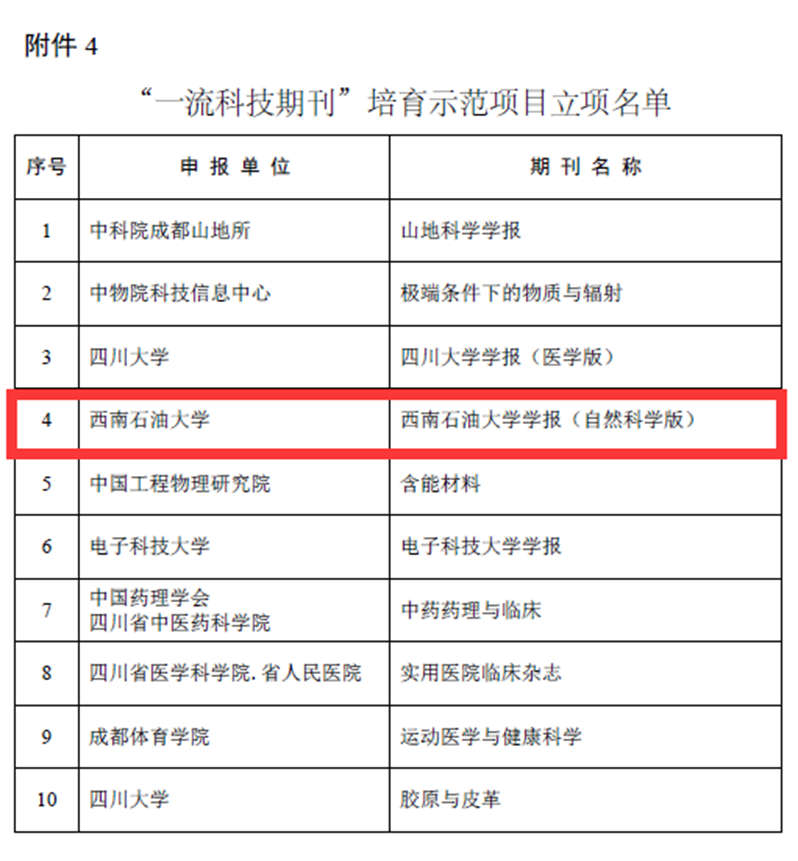 4月17日,四川省科學(xué)技術(shù)協(xié)會(huì)公布了2024年度天府科技云科技社團(tuán)能力提升項(xiàng)目立項(xiàng)名單,《西南石油大學(xué)學(xué)報(bào)(自然科學(xué)版)》獲批“一流科技期刊”培育示范項(xiàng)目立項(xiàng)。