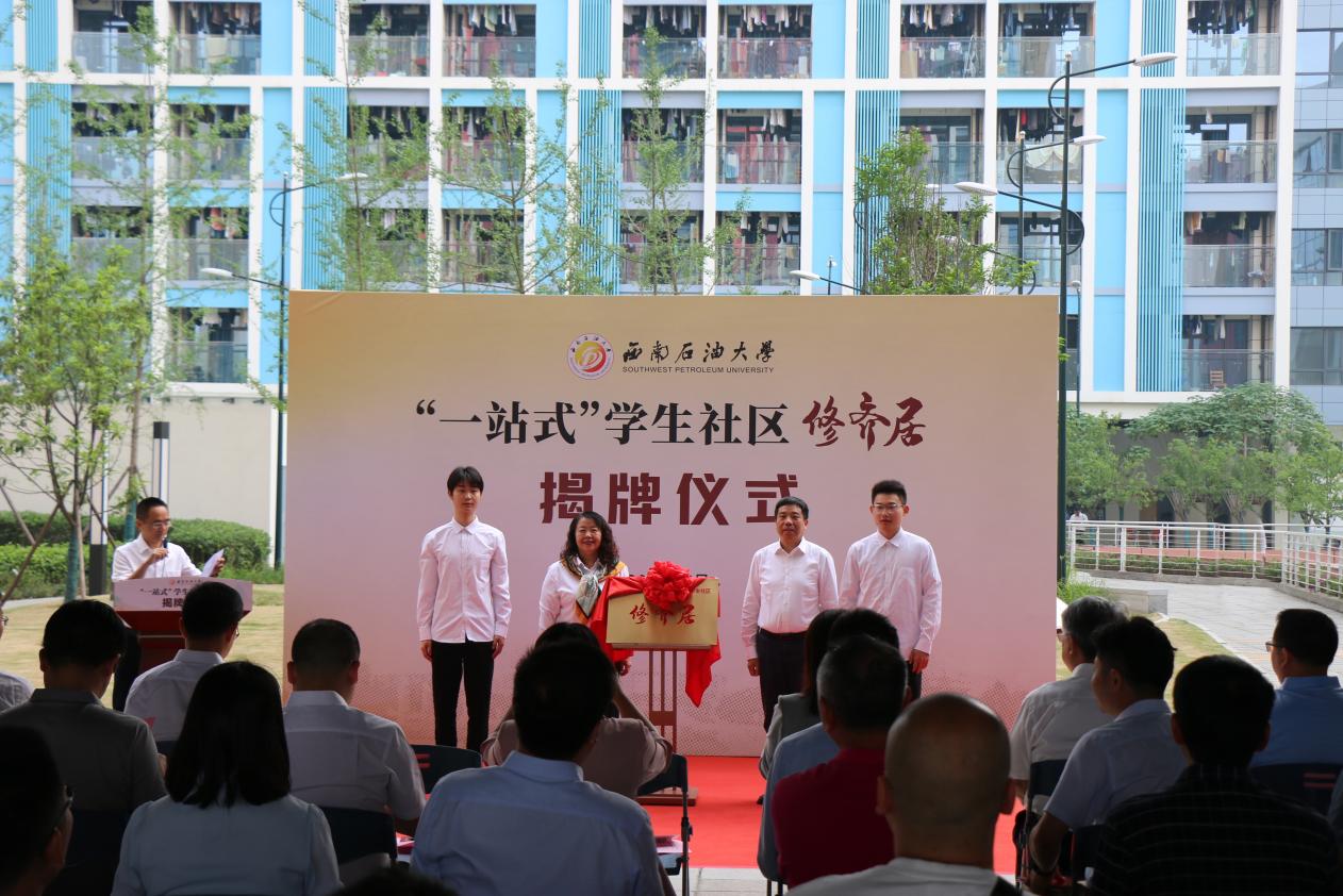 繼臨溪書院、銀杏雅苑,5月16日,我校又一個“一站式”學生社區修齊居正式揭牌。黨委副書記、校長郭建春,黨委副書記、校工會主席衡彤以及學生代表共同為修齊居揭牌。
